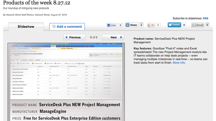 Servicedesk Plus valdes till Product of the Week” sista veckan i augusti av amerikanska Network World bara några dagar efter att Project Management modulen släpptes i beta-version.