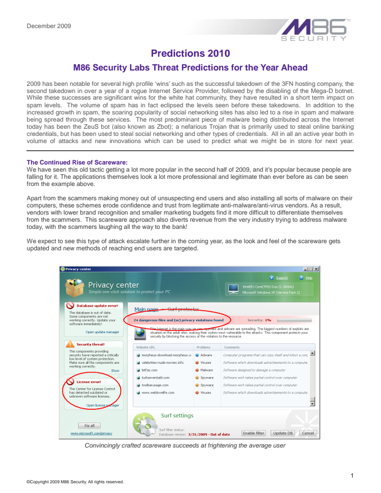 M86 Security Labs ger sin bild över hur hotbilden kommer se ut 2010.