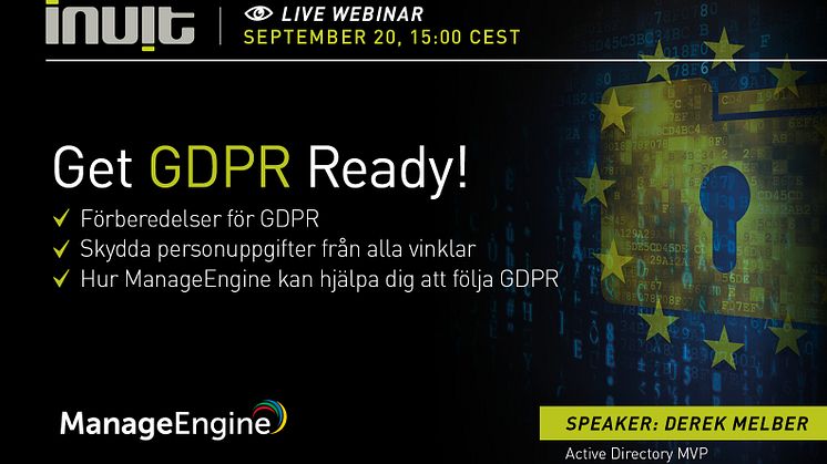 Delta på detta webinar med Derek Melber, Active Directory MVP, och få insikter i hur du förberedelser organisationen för GDPR.