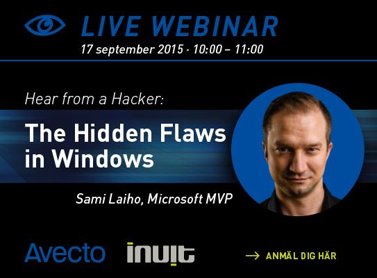 Sami Laiho, Microsoft MVP, visar i detta live-webinar hur dagens hackers kan utnyttja de brister som finns i Windows för att komma åt din organisations information och system. Sami kommer visa hur du kan använda Windows-verktyg som UAC, AppLocker och NTFS säkerhet för att eliminera "bakdörrs-sårbarheter” och samtidigt öka användarnas produktivitet och tillfredsställelse. Läs mer på länken.