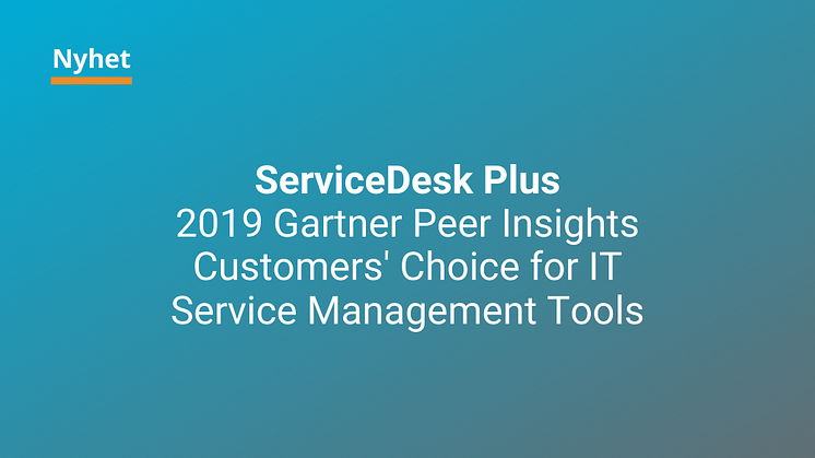 ServiceDesk Plus har utnämnts till 2019 Gartner Peer Insights Customers' Choice for IT Service Management Tools